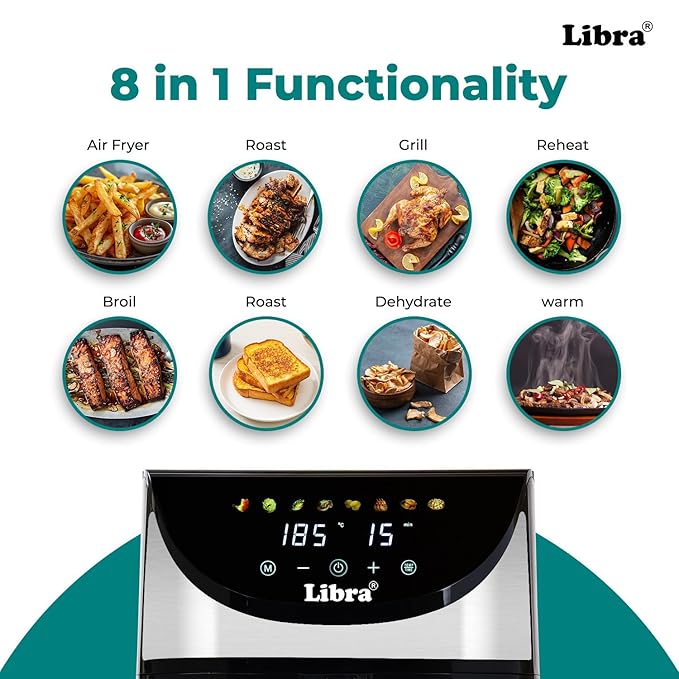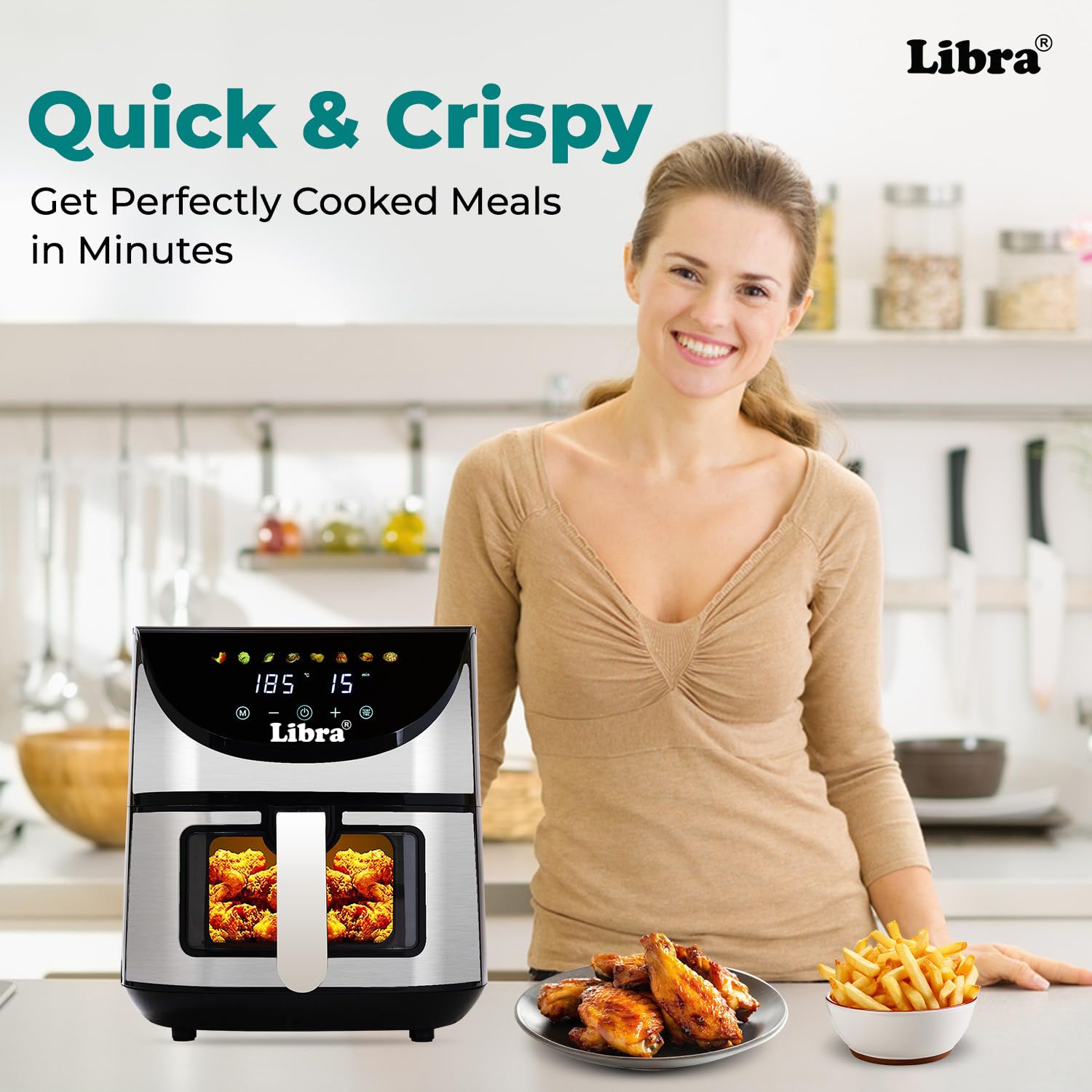 Libra air fryer has a 6.5-litre inner pot, which is perfect for preparing meals for 4 to 5 people