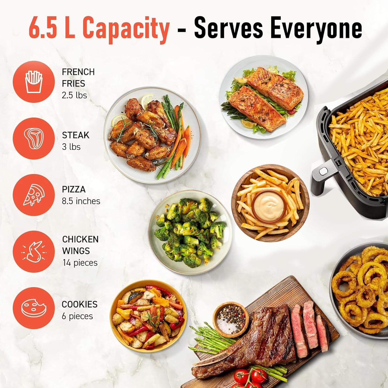 • 6.5L basket fits full meals—perfect air fryer for whole family.